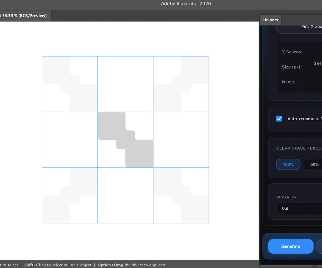 Generate accurate grids, anchors, handles, and construction guides that highlight the thinking behind the design and elevate how your work is perceived by clients and teams. For Adobe Illustrator.